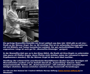 Am Freitag, 20.02.2026 um 19.30 Uhr gibt es in Ingelheim in der Saalkirche ein Stummfilm-Konzert: Die Austernprinzessin.